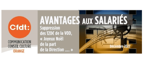 Avril 2023 - Rappelons que lors de la commission de suivi du 12 décembre 2022, la direction avait annoncé sa décision de supprimer tout simplement le crédit VOD de 120 euros sans offre substituable équivalente !