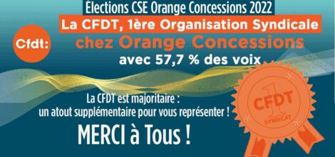 || ELECTIONS || du Comité Social et Economique - 24 et 25 mars 2022. La CFDT est Première organisation syndicale chez Orange Concessions avec 57,73% des suffrages.