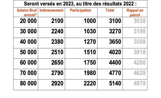 Montants individuels connus le 7 mars pour la Participation (versée le 20 avril) et le 5 avril pour l’Intéressement (versé le 22 mai).