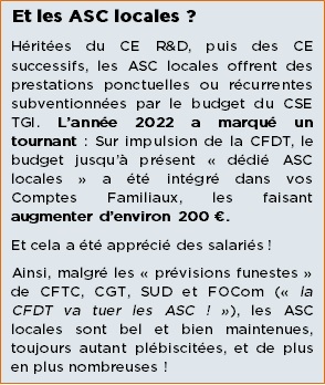 C’est pourquoi, Président de la Commission ASC (CFDT), Secrétaire (CFDT) et Trésorier ont travaillé sur le budget 2023 … qui a été validé par la majorité des élus au CSE de la fin octobre !