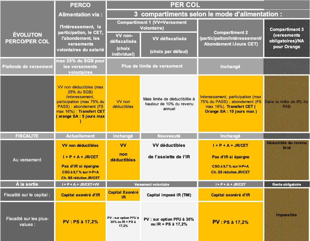 À Orange, transformation du PERCO en PER COL le 2 novembre 2022 :