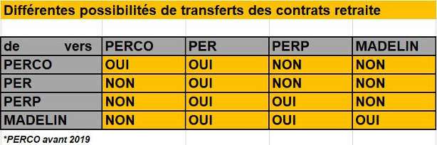 individuellement les droits qu’elle y détient vers un autre contrat de retraite, géré par un autre organisme assureur. Les transferts deviennent possibles entre produits d’épargne retraite avec un plafonnement, voire une gratuité, des frais.