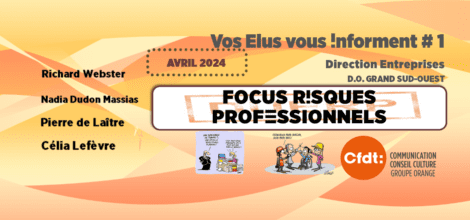Depuis toujours, la CFDT se bat pour préserver la santé au travail des salariés. Dans la définition de l'OMS, la santé est un état de complet bien-être physique, mental et social et ne consiste pas seulement en une absence de maladie ou d'infirmité. Aujourd'hui, les conditions de travail en termes d'organisation, de charge et de localisation, le stress et les sources de Risques Psycho Sociaux peuvent dégrader ce capital santé. La CFDT agit au quotidien pour qu'une véritable prévention primaire soit mise en œuvre dans l'entreprise. "Ne perdons pas notre vie à la gagner !"